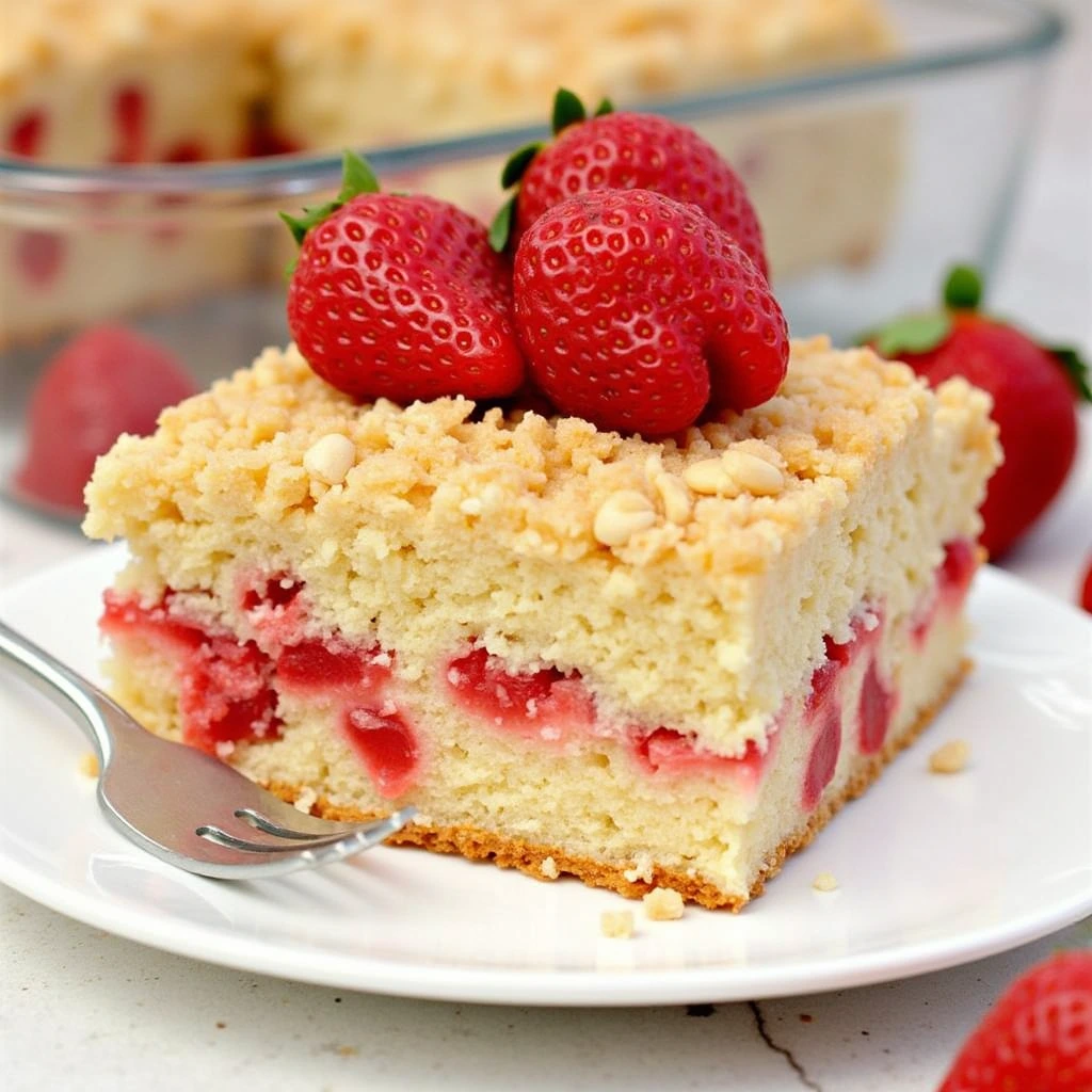 Creating a more nutritious version of this strawberry crunch cake recipe doesn’t mean sacrificing flavor: